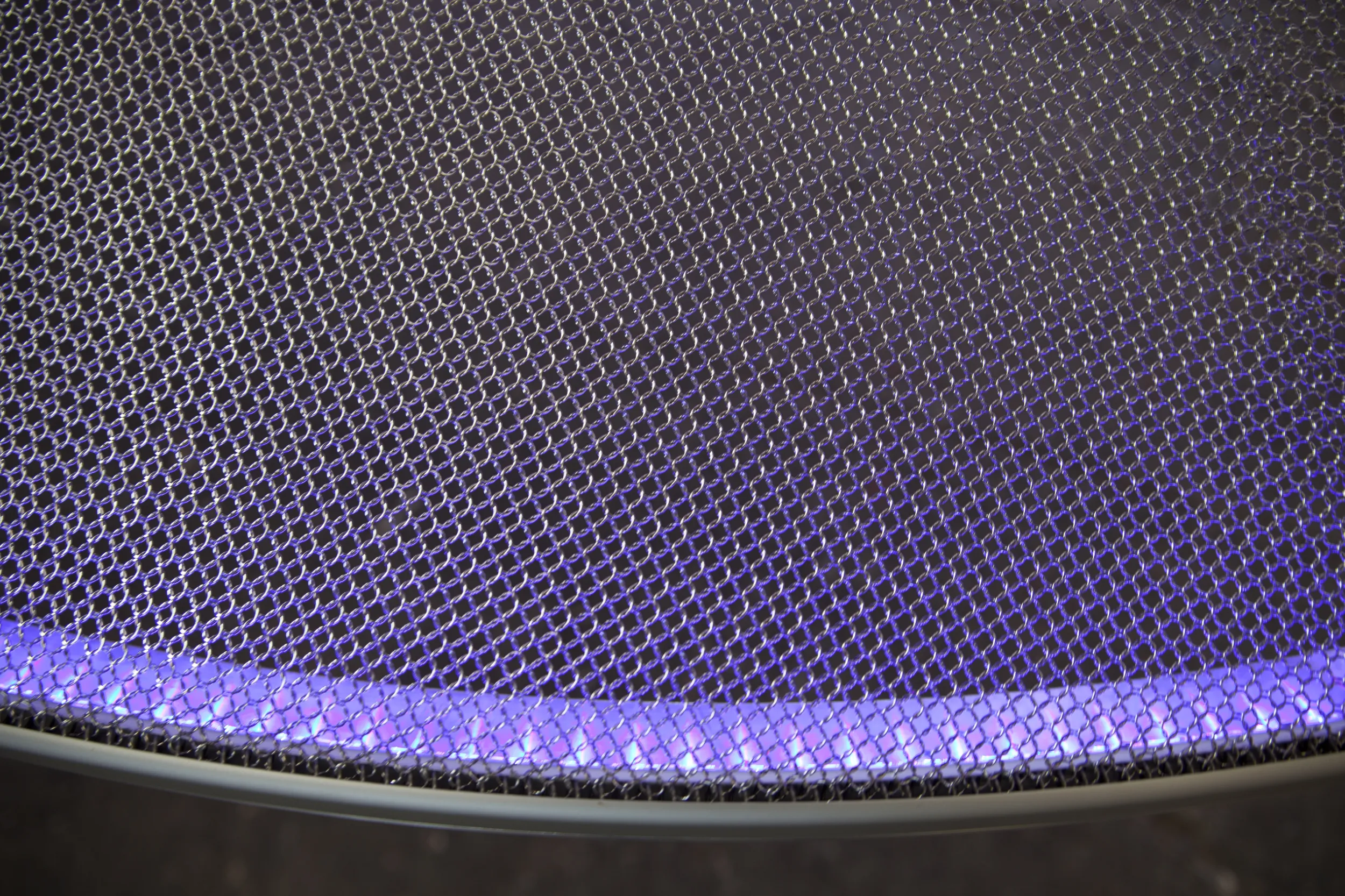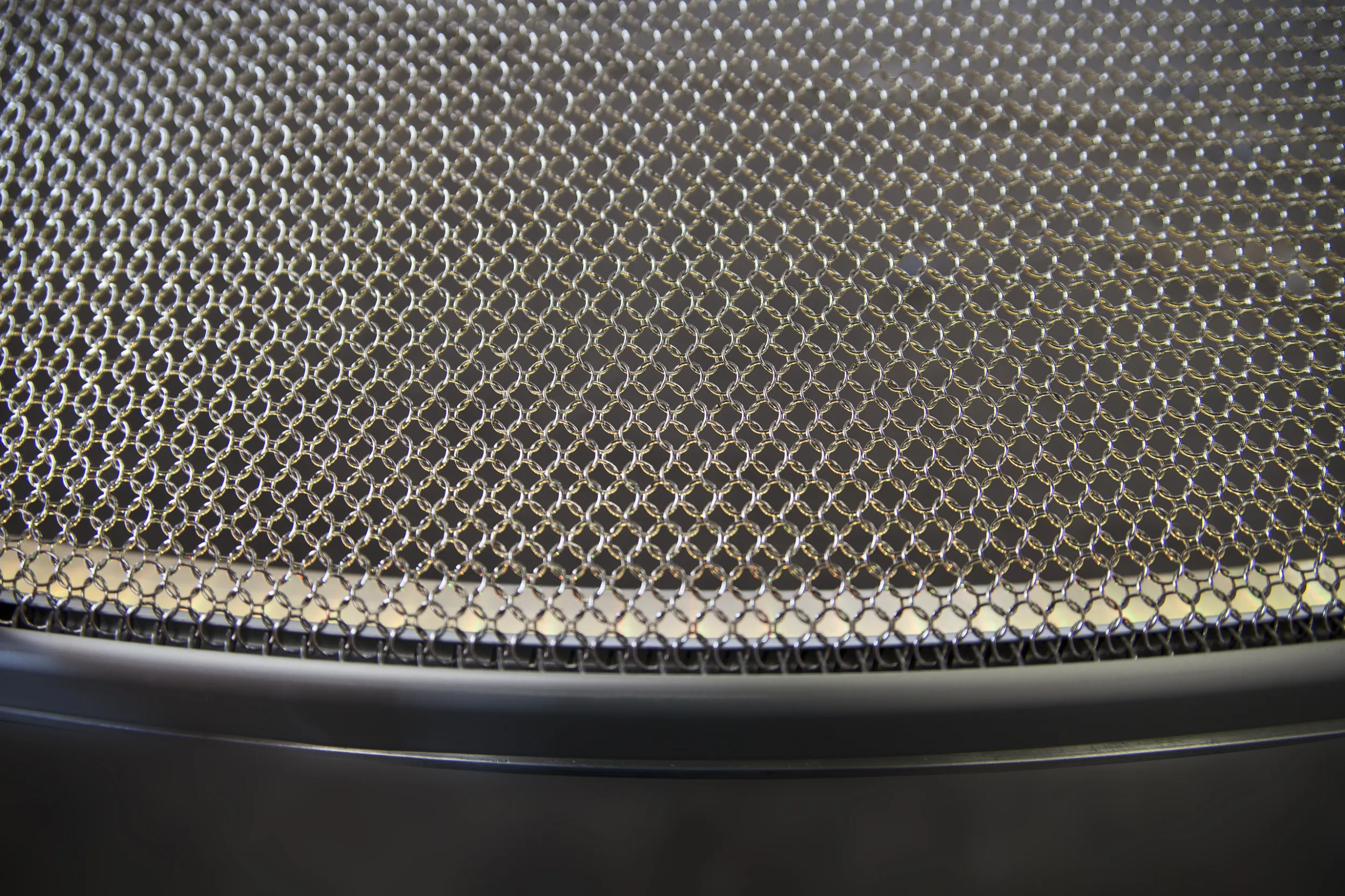Material: Ringgeflecht 7.0 Edelstahl poliert mit integrierter LED-Beleuchtung in der Rundschiene.