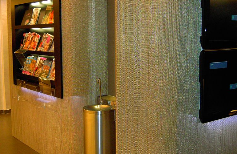 Runde Ecken mit Kugelketten als Wandverkleidung in Wien.
