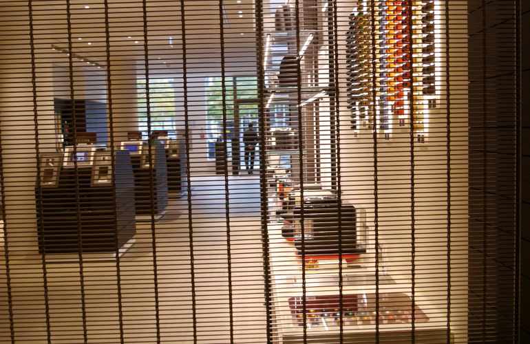Automatische Raumabtrennung, die einen Blick in den VIP Shop zulässt.