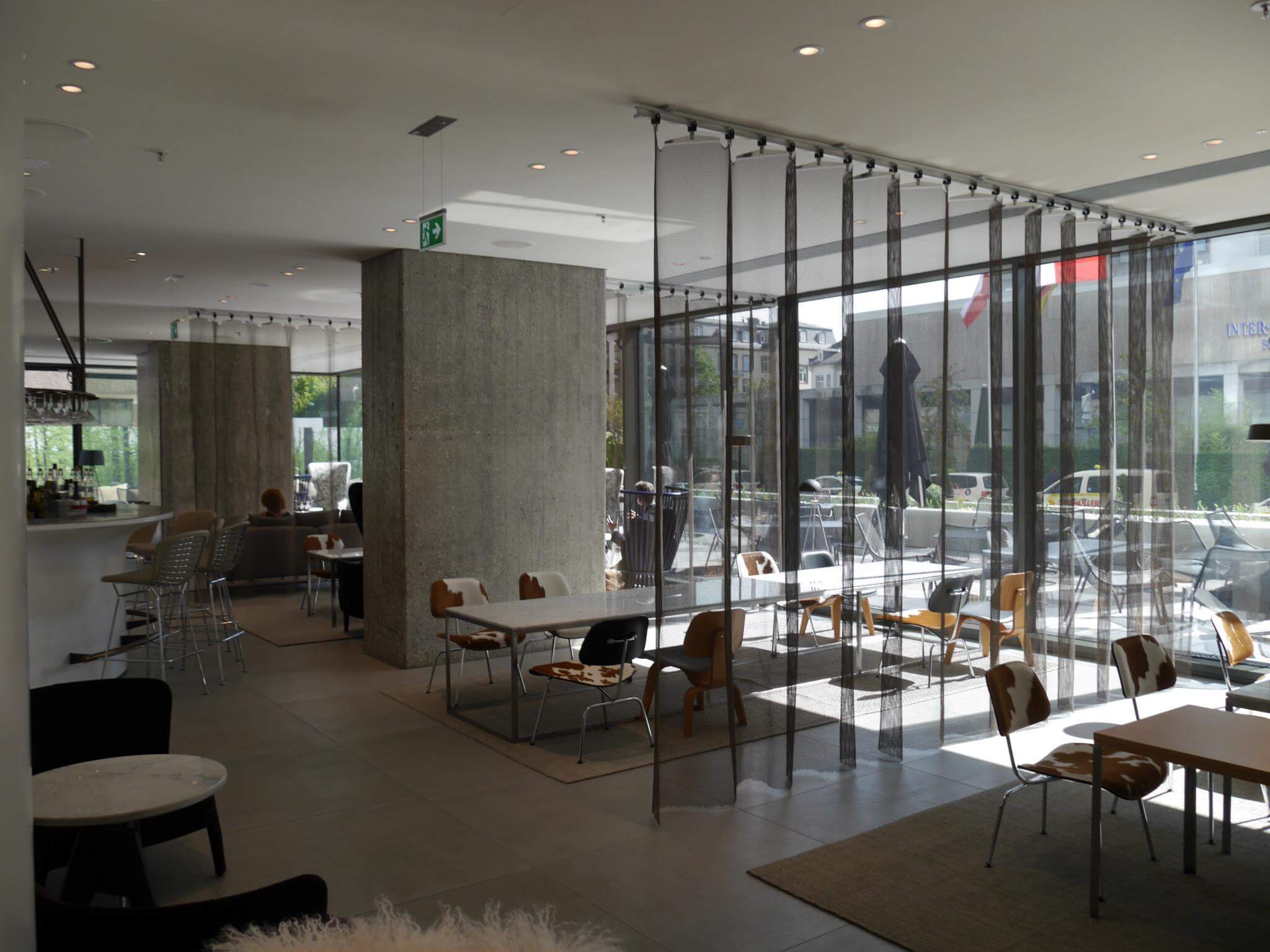 Mit dem Ringgeflecht bieten sich außergewöhnliche gestalterische Möglichkeiten. Das Material nimmt Farbenspiele von Lichtprojektionen perfekt auf, es variiert zwischen Tranzparenz und Blickschutz.