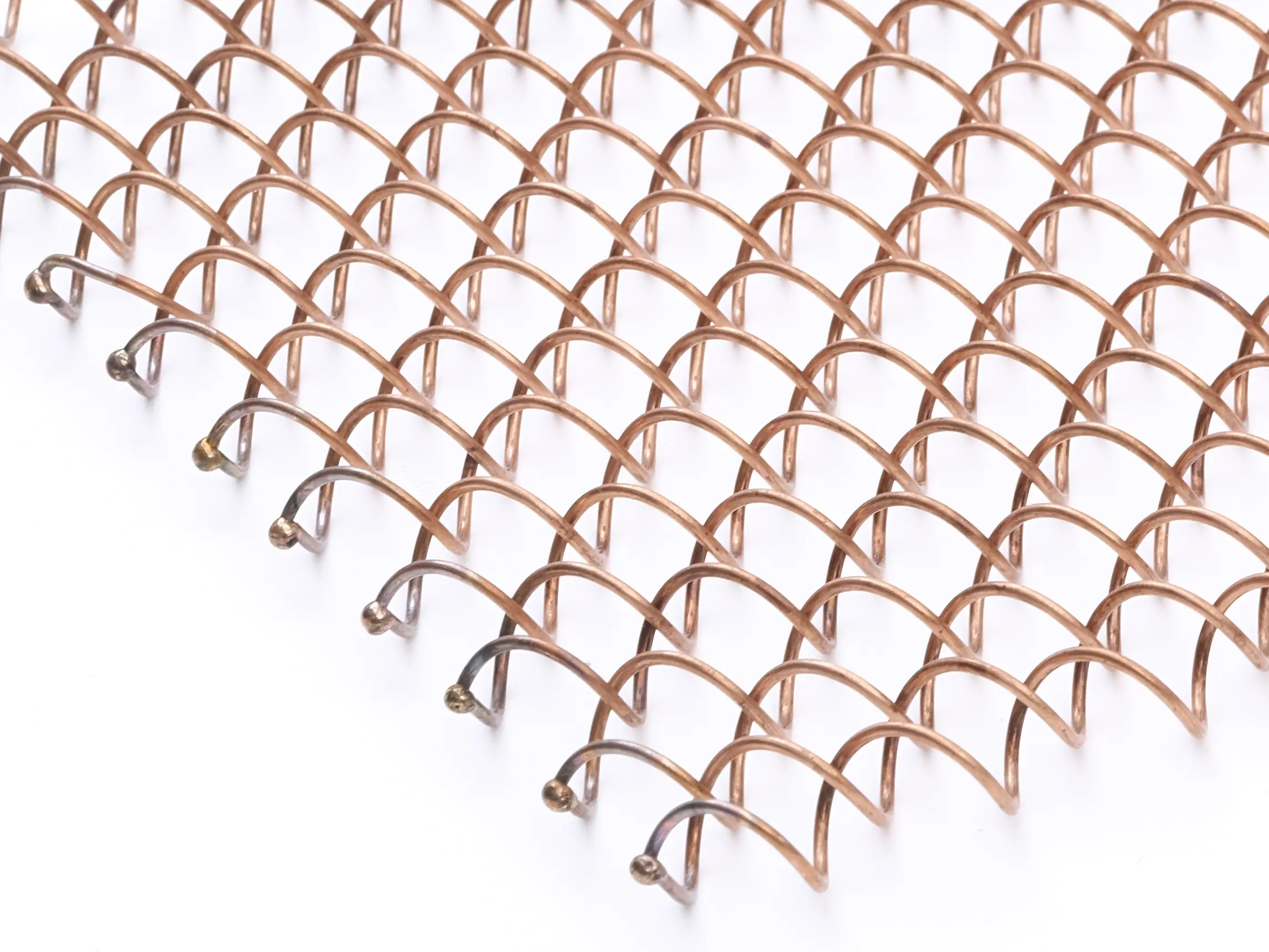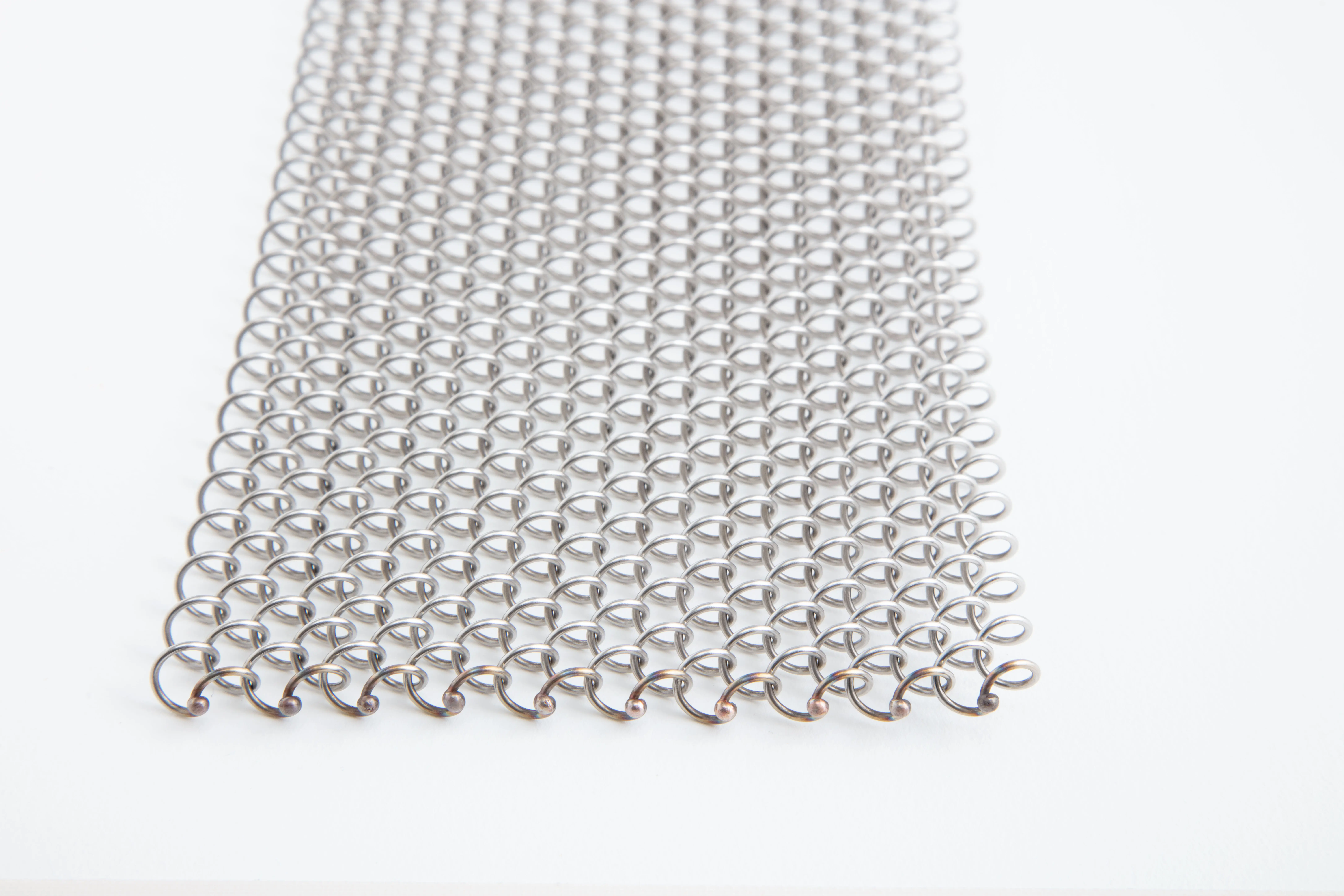 Puristisch in Edelstahl, klassisch in Kupfer, Messing und Bronze oder modern in Aluminium. In frei wählbaren Maschenformen, Drahtstärken und Steigungen lässt sich Ihr persönliches Materialkonzept verwirklichen.