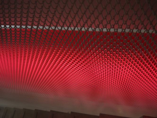 Drahtgeflecht als Designelement ohne beengte Verhältnisse zu schaffen.