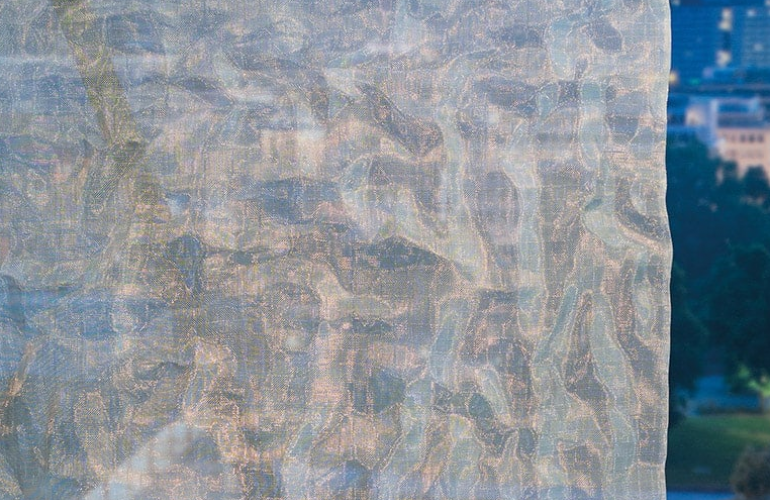 Die Metallgewebe, mit unterschiedlichen Eigenschaften, zaubern einen Eindruck von leichtem Stoff. Durch das verwendete Metall habe diese ein breites Farb-, Schatten oder Moiré-Effekt.